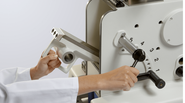 The closed grinding chamber with intervention protection of all moving parts and ensures a safe and dust-free operation. An integrated connection makes it very simple to combine the instrument with a dust exhaust system for automatic removal of the fine dust arising during grinding. The dust exhaust system is also very useful when cleaning grinding parts.